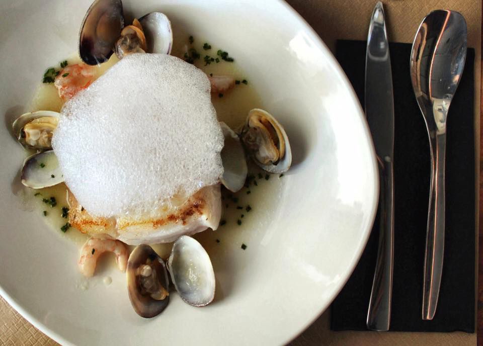 Merluza con jugo de perejil, oblea de morcilla y caviar de limón 23,50€